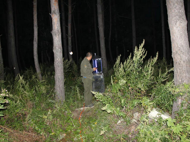 市林业局森防站以测报为基础,根据天气变化以及虫情发生规律,及时抓住落叶松毛虫成虫羽化高峰期。该站防治组利用落叶松毛虫成虫期的趋光性,同时结合林业有害生物虫害作业设计,在春光林场的5、6等林班及时利用黑光灯及频振杀虫灯对落叶松毛虫进行有效防治,每晚9点出灯,凌晨1点收灯,雌雄比为1:8,预计防治面积共0.5万亩。