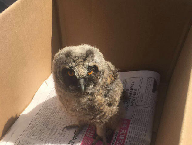 2018年6月3日7时,我局接到铁力市工农乡兰河村村民乔某报警,称其在农田作业过程中捡拾一只猫头鹰。我局当日值班领导霍文军、民警赵凯及辅警张亮立即赶赴现场,到达现场后发现一只猫头鹰幼鸟,我局民警立即将猫头鹰幼鸟带回至铁力市森林公安局救助,同时与野生动物主管部门工作人员进行协调,将猫头鹰幼鸟移交给黑龙江省小兴安岭野生动物救助中心。